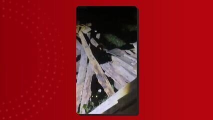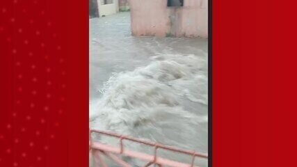 Imagens gravadas por moradores mostram a força da água que fez ceder parte do muro da área militar e provocou…